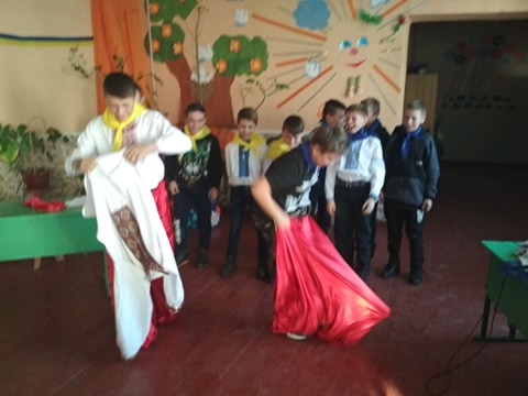 У вступному слові , разом з учнем 7 класу Андрієм Луценко , розповіли присутнім що історія нашої армії не заплямована, бо українські вояки ніколи не були агресорами, а добросовісно виконували почесну місію – захищали рідну землю.