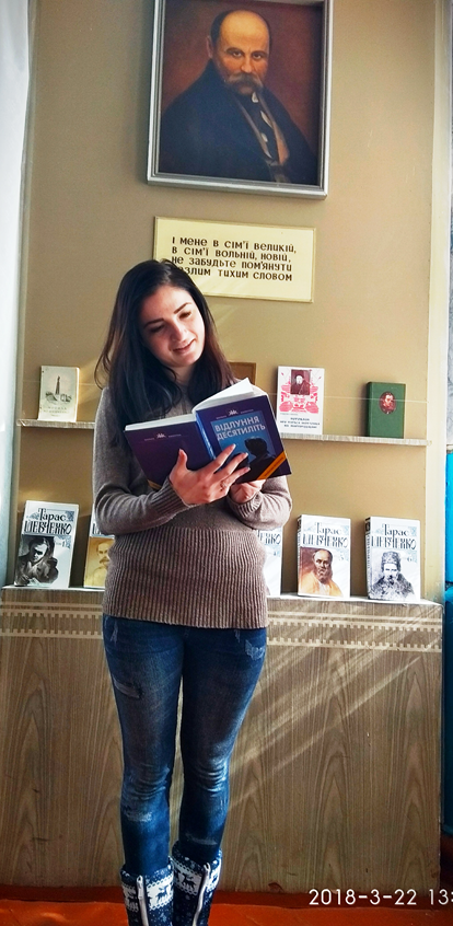 Бібліотекар, Людмила Роменська, розповіла про започаткування цього чудового свята, вона сказала, що поезія – це найважливіше культурне явище, всеосяжна мова, що передає внутрішнє прагнення жити разом з іншими, це головний засіб самоствердження та всезагального розвитку. Неперевершена поезія Лесі Українки та Тараса Григоровича Шевченка, яку читала бібліотекар вкотре зачаровувала присутніх. Кохання і поезія…вона є дзеркалом душі людської, де відбуваються найсокровенніші думки, найзаповітніші мрії, де найглибше і найвиразніше знаходять свій вияв почуття. І саме така поезія сучасних українських поетів лунала цього весняного дня. Марина Цуркан читала вірші Ліни Костенко «Очима ти сказав мені люблю!», «Моя любове! Я перед тобою».