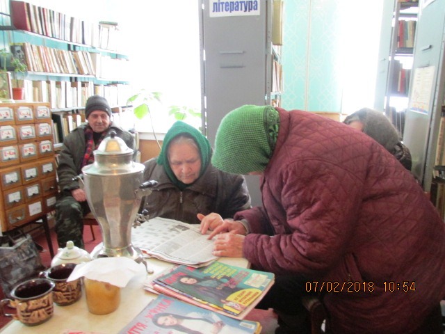Година спілкування пролетіла для відвідувачів непомітно , розмова проходила в затишній , дружній атмосфері, бібліотекар, добра господиня, пригостила присутніх запашним чаєм, познайомила з новими періодичними виданнями, що отримує бібліотека.