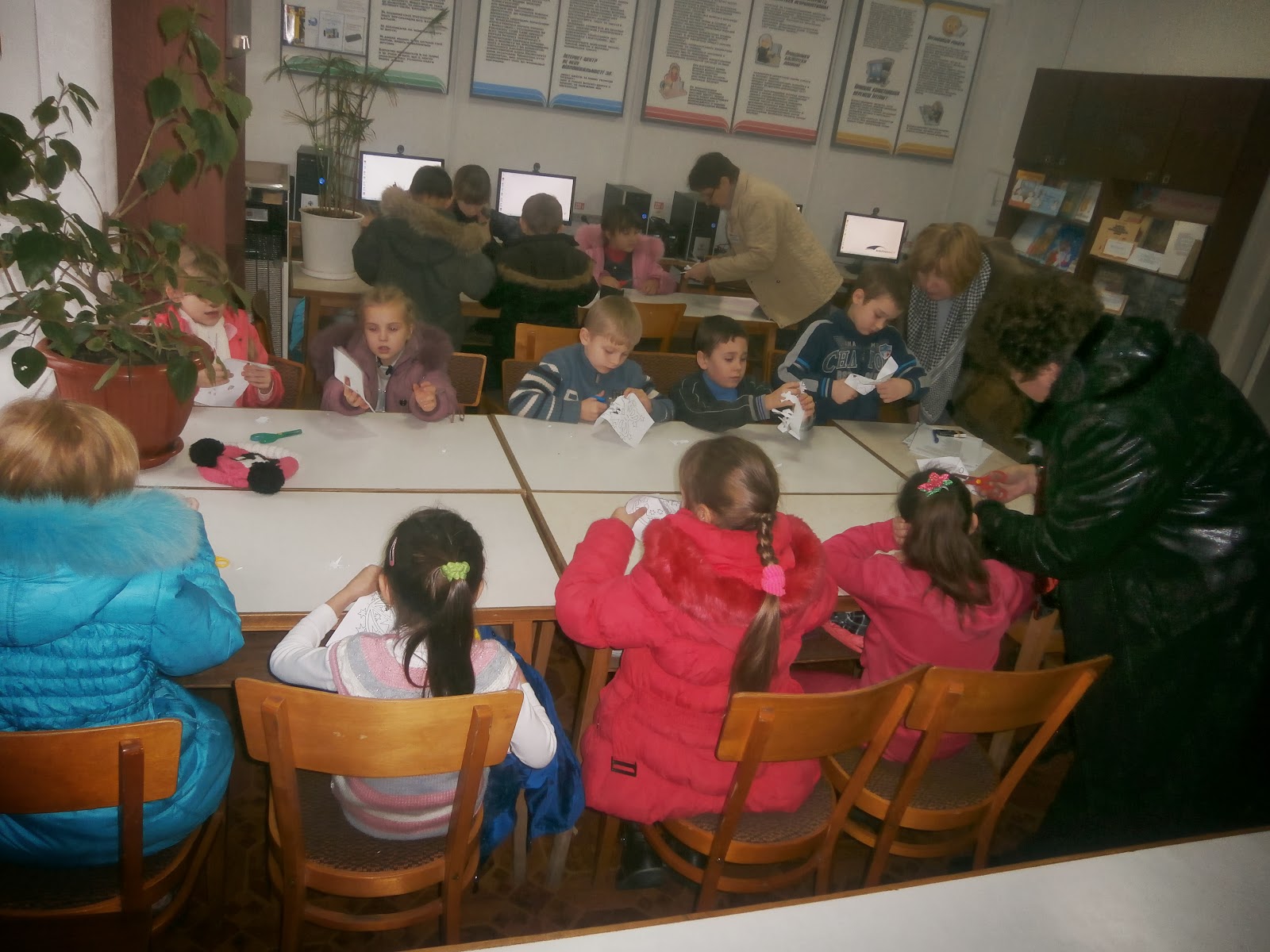 Працівники бібліотеки мали змогу ще раз переконатися, що до них завітали справді чемні діти – на всі запитання гри-конкурсу «Хто ж той добрий Миколай?» вони дали правильні відповіді. А ще малята вирішили своїми руками зробити подарунки Миколаю – старанно вирізали витинанки, які потім помістили на діючу виставку.