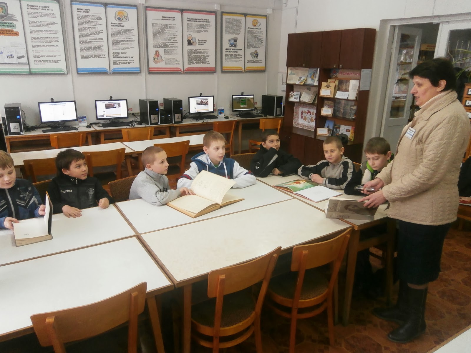 Разом з провідним бібліотекарем З. Єщенко познайомилися з бібліотекою, допомогли повернути речі літературним героям, активно відповідали на запитання казкової вікторини та відгадували загадки. А в читальній залі з великим захопленням розглядали малюнки в книжках та журналах.