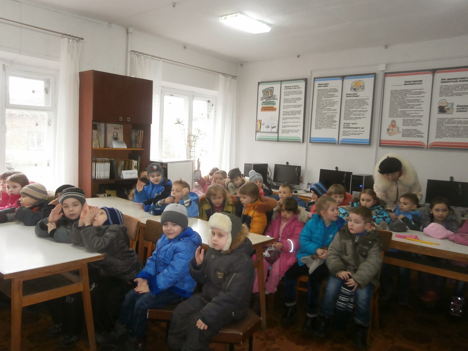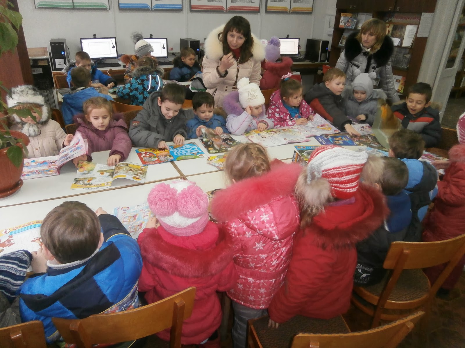 «Не кажи - не вмію, а кажи - навчусь». Саме цій народній мудрості слідує малеча ДНЗ №11 «Теремок» комбінованого типу «Школа сприяння здоров’ю». Готуючись до школи, вони старанно долають навчальні заняття в своєму дитячому садочку. А 16 січна діти груп «Дзвіночок», «Гвоздичка», «Ялинка» та «Тюльпан» зі своїми вихователями Т. Цуркан, Г. Стеценко, С. Якименко, Л. Маляр завітали до нашої бібліотеки на екскурсію. Хоча в кожного вдома є книжечки, навіть полиці з книжками, а в садочку є ціла шафа з книжками, діти були в захваті від кількості книжок та журналів у бібліотеці. Отож, були трішки здивовані, дізнавшись про те, що таїть у собі саме слово «бібліотека» - будинок, де зберігаються і живуть книги.