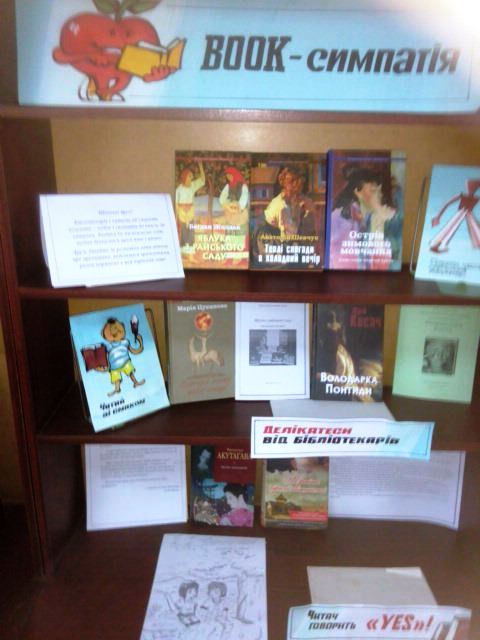 З метою популяризації книги та читання 22 грудня 2015 року в читальній залі Миргородської центральної районної бібліотеки оформлено книжково - ілюстративну виставку- діалог « ВООК – симпатія», яка пропонує відвідувачам познайомиться не тільки з новинками літератури, але і дізнатися особисту думку бібліотекарів про книги, а також залишити свій відгук чи малюнок про книги, які їх вразили.
