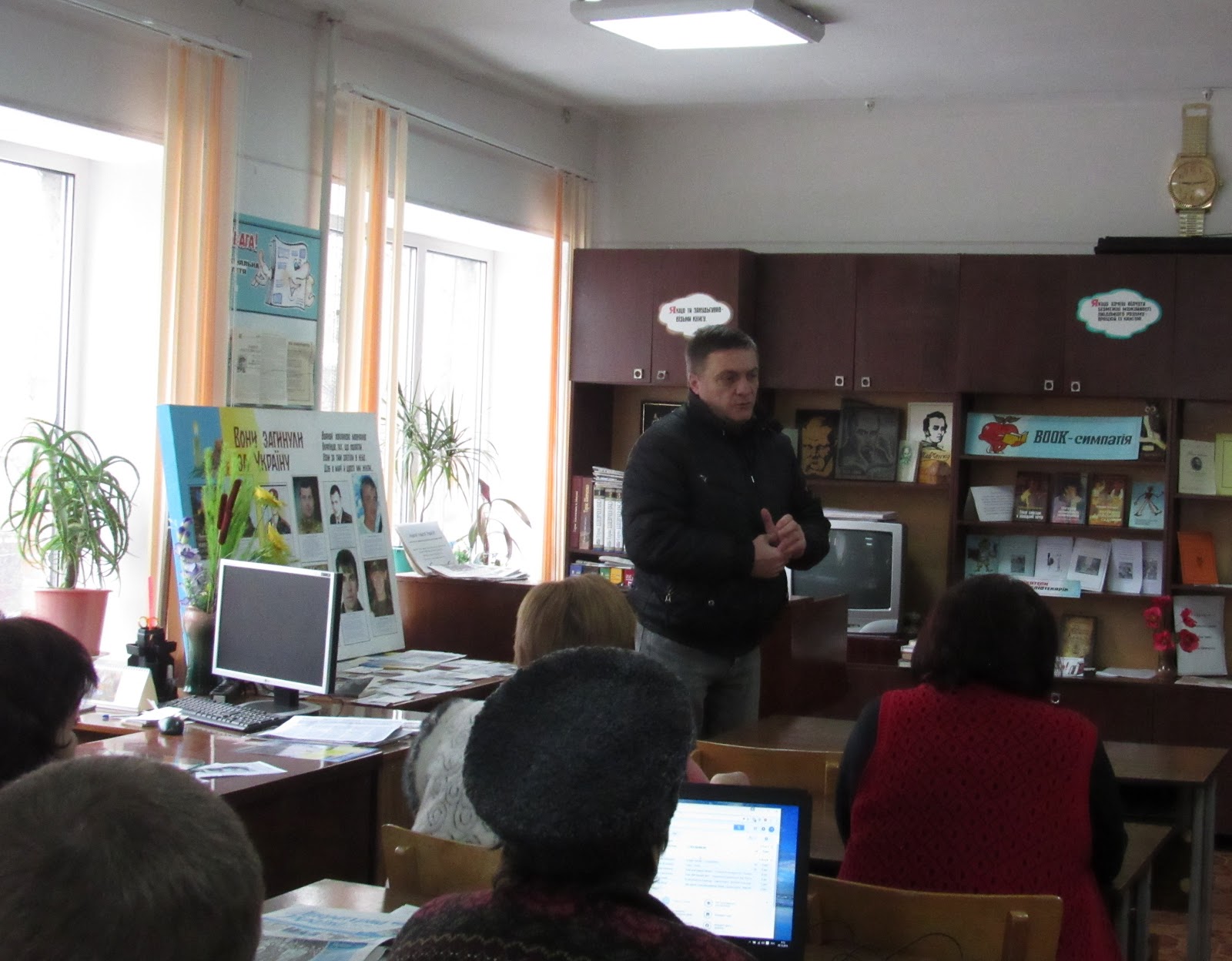 9 грудня в Миргородській центральній районній бібліотеці відбулася зустріч користувачів та працівників бібліотеки з комендантом об’єкту 3-го територіального вузла урядового зв’язку, учасником АТО, депутатом Миргородської міської ради Віталієм Олександровичем Гречко. Пан Віталій розповів присутнім про те, які першочергові завдання стоять перед депутатами, коротко дав характеристику міської програми "Місто без околиць." Він розповів, що саме у віддалених мікрорайонах міста продовжують відновлювати міжбудинкові проїзди, прокладати нові дороги і тротуари. У рамках міської програми "Місто без окол