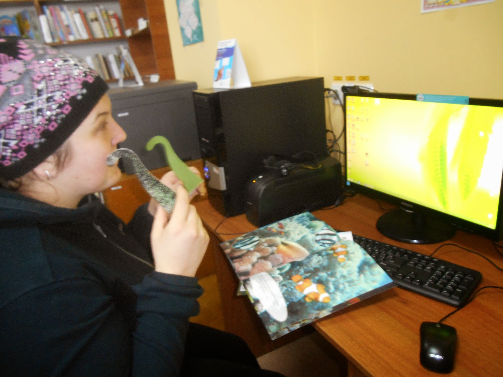 - Богоміл Тетяна Петрівна із цікавістю розглядає дитячі 3D енциклопедії.