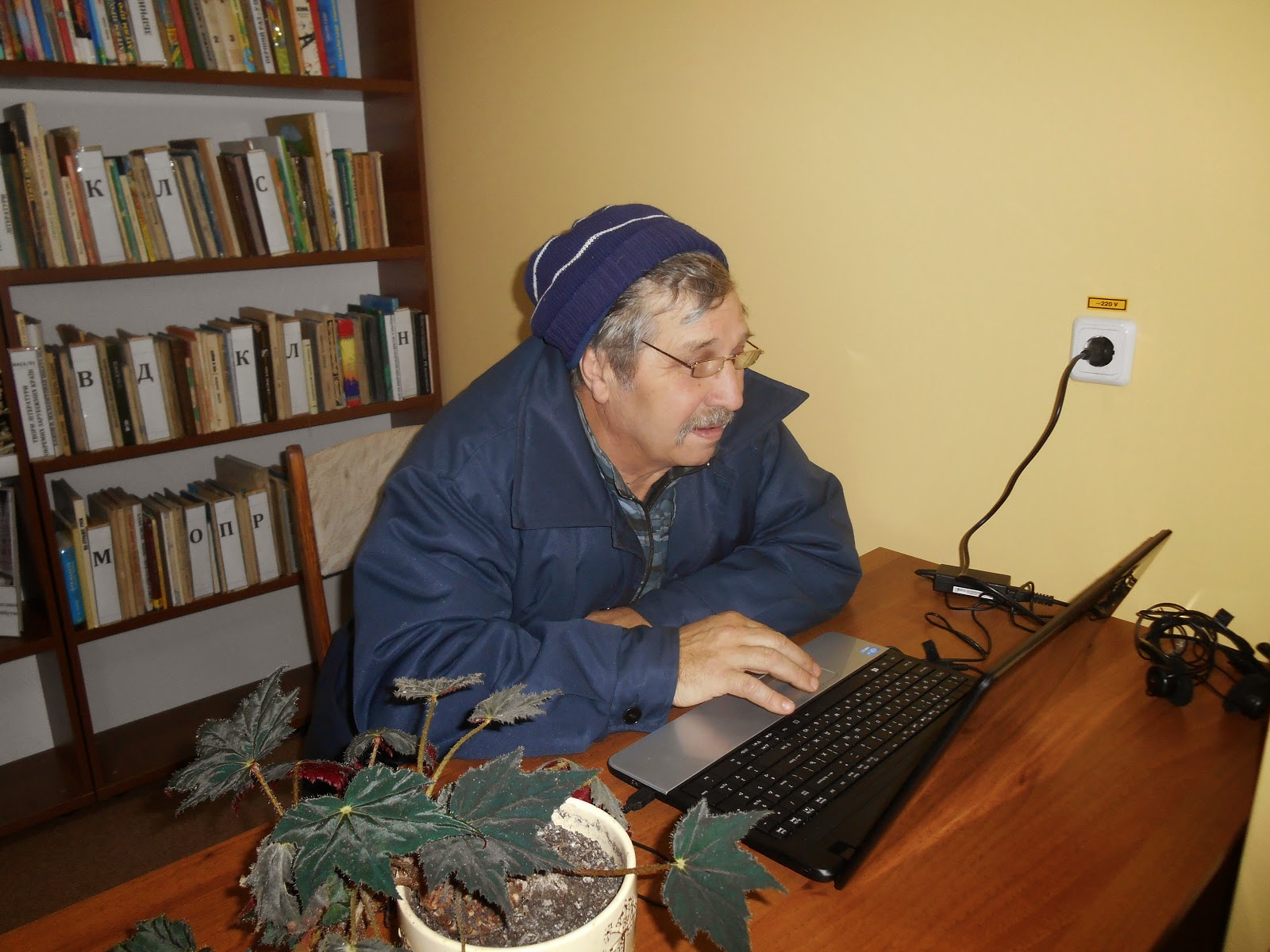 Житель села В.Сорочинці, пенсіонер Рудий Валентин Володимирович опановує ази роботи в мережі Інтернет.
