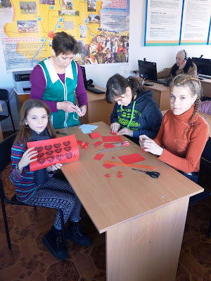 В Миргородській центральній районній бібліотеці до свята готувались заздалегідь і дуже серйозно. Бібліотечний актив займався дизайном – сердечка, валентинки, запрошення і багато різноманітних цікавих святкових штучок… Фантазія працювала без меж!