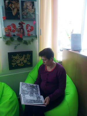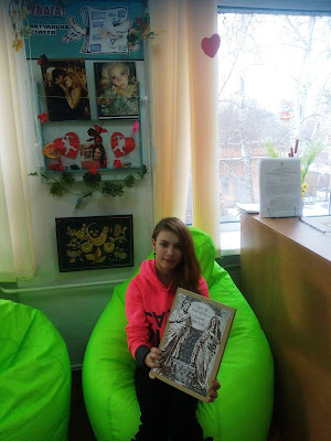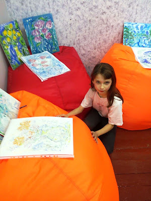 Приємною несподіванкою стало те, що на наше свято завітала художниця аматор Олександра Круглікова, яка представила свої чудові роботи, і в нашій вітальні абсолютно спонтанно виникла виставка - інсталяція, яка знайшла відразу свою юну шанувальницю!