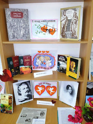 Матеріали з історії свята, Валентинки, малюнки і ,звичайно ж, книжки про Любов. Відвідувачі знайомилися з листами класиків до своїх коханих. Це листування було цікавим як для людей зрілого віку, так і для молоді.