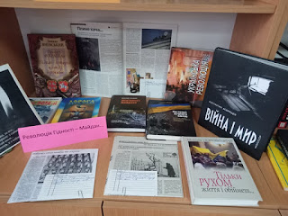 На ній представлено багато цікавого матеріалу щодо шляху нашого народу до свободи. Треба сказати, що останнього часу фонд бібліотеки суттєво поповнився новими виданнями з історичної літератури. І ми з великою радістю демонструємо це багатство нашим відвідувачам.