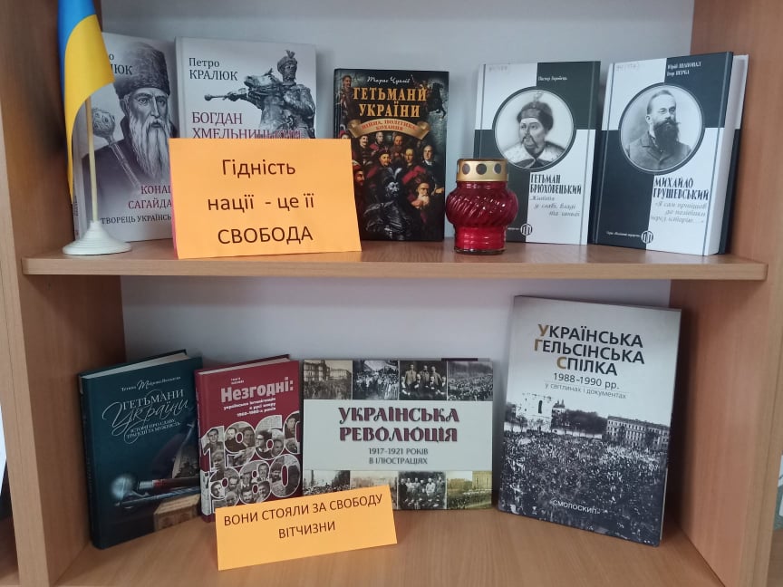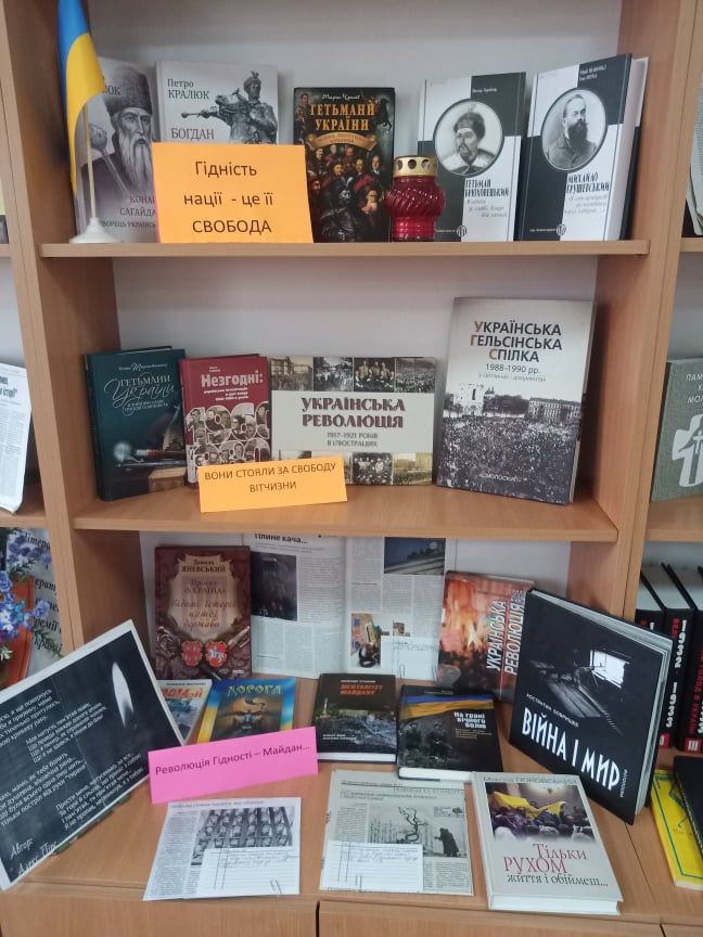 В Миргородській центральній районній бібліотеці до цього урочистого дня підготували виставку – реквієм «Гідність нації – це її свобода».