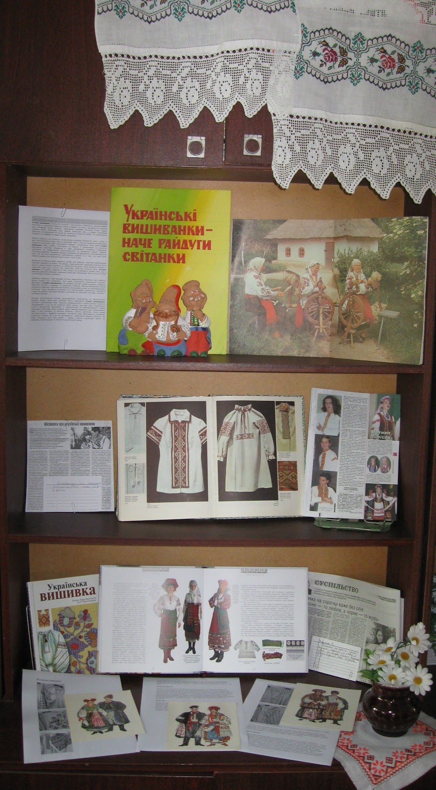 Завдяки оригінальному оформленню експозиції, читачі мали змогу ознайомитись із сучасними та старовинними зразками вишиванок.