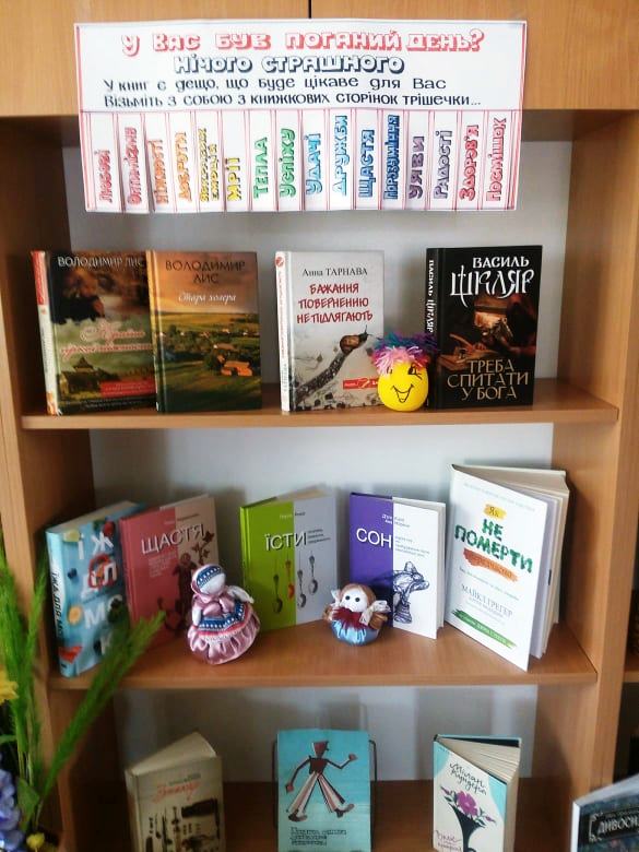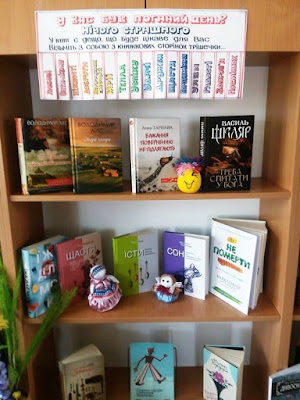 Бажання поверненню не підлягають» . А скільки емоцій викличе у вас роман нашого земляка Василя Ошеки «Стежками долі». Прочитавши його, ви геть забудете про всі свої проблеми, тому що доля героїв книги стане для вас набагато важливіше. Любителі історичних романів теж знайдуть для себе розраду. Для них на виставці пропонується романи Василя Шкляра - одного з найвідоміших письменників сучасної України. Звичайно, поряд з художніми книгами, ви знайдете для себе і науково - популярну літературу. Книги з психології, педагогіки, про здоровий спосіб життя задовольнять смаки найвибагливіших читачів. Обіцяємо, кожен наш відвідувач отримає свої ліки для душі, і не піде від нас з порожніми руками.