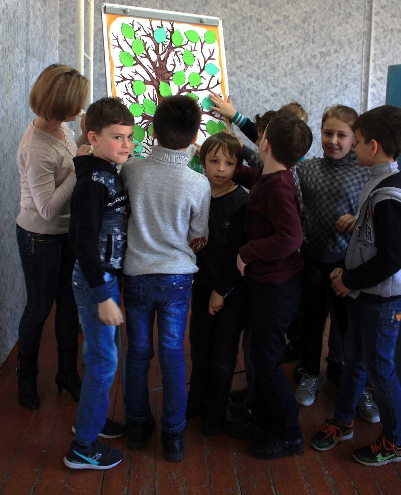 Потім кожен учасник свята подумав, чим саме може допомогти природі та написав це на листочку з паперу і прикріпив його до імпровізованого деревця.
